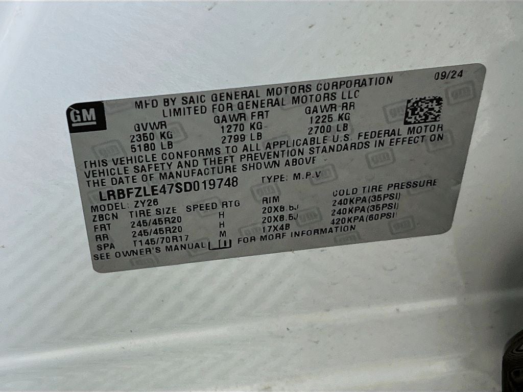 - Tires, P245/45R20 all-season