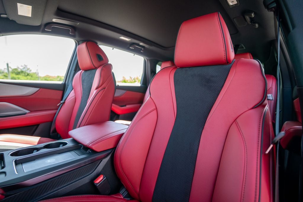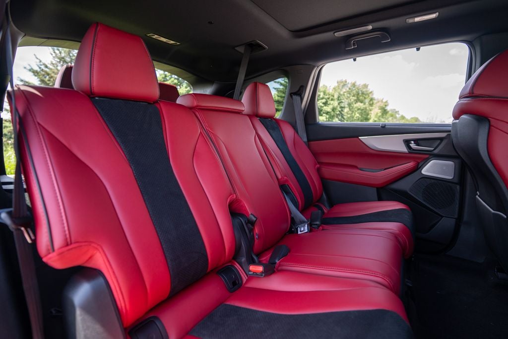 ** Additional standard features include 3rd row seats, removable center seat in 2nd row, 12.3-inch dual content touchscreen center display, Google built-in (includes 3-years unlimited data plan for in-vehicle apps), Qi-compatible wireless charging, Wi-Fi hotspot capability, AcuraLink connected services, wireless Apple CarPlay and Android Auto integration, Amazon Alexa integration, panoramic moonroof, Jewel Eye LED Headlights, Adaptive Cruise Control with cornering speed assist, blind spot information system, Forward Collision Warning (FCW) system, Lane Departure Warning System (LDW), Lane Keeping Assist System (LKAS), Road Departure Mitigation System, Collision Mitigation Braking System (CMBS), Rear Cross Traffic Monitor, Traffic sign recognition, 12-way power driver's seat and front passenger seat including 4-way power lumbar, 3-driver memory system, heated front seats.
