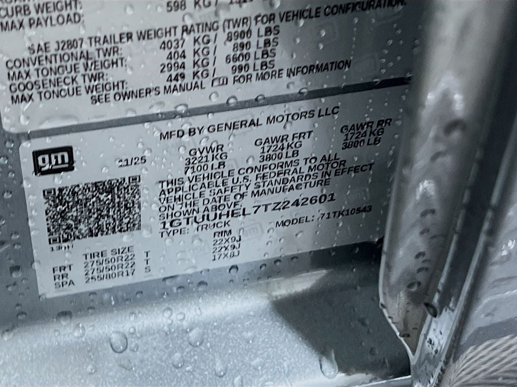 - Front Tire Size: 275/50R22SL