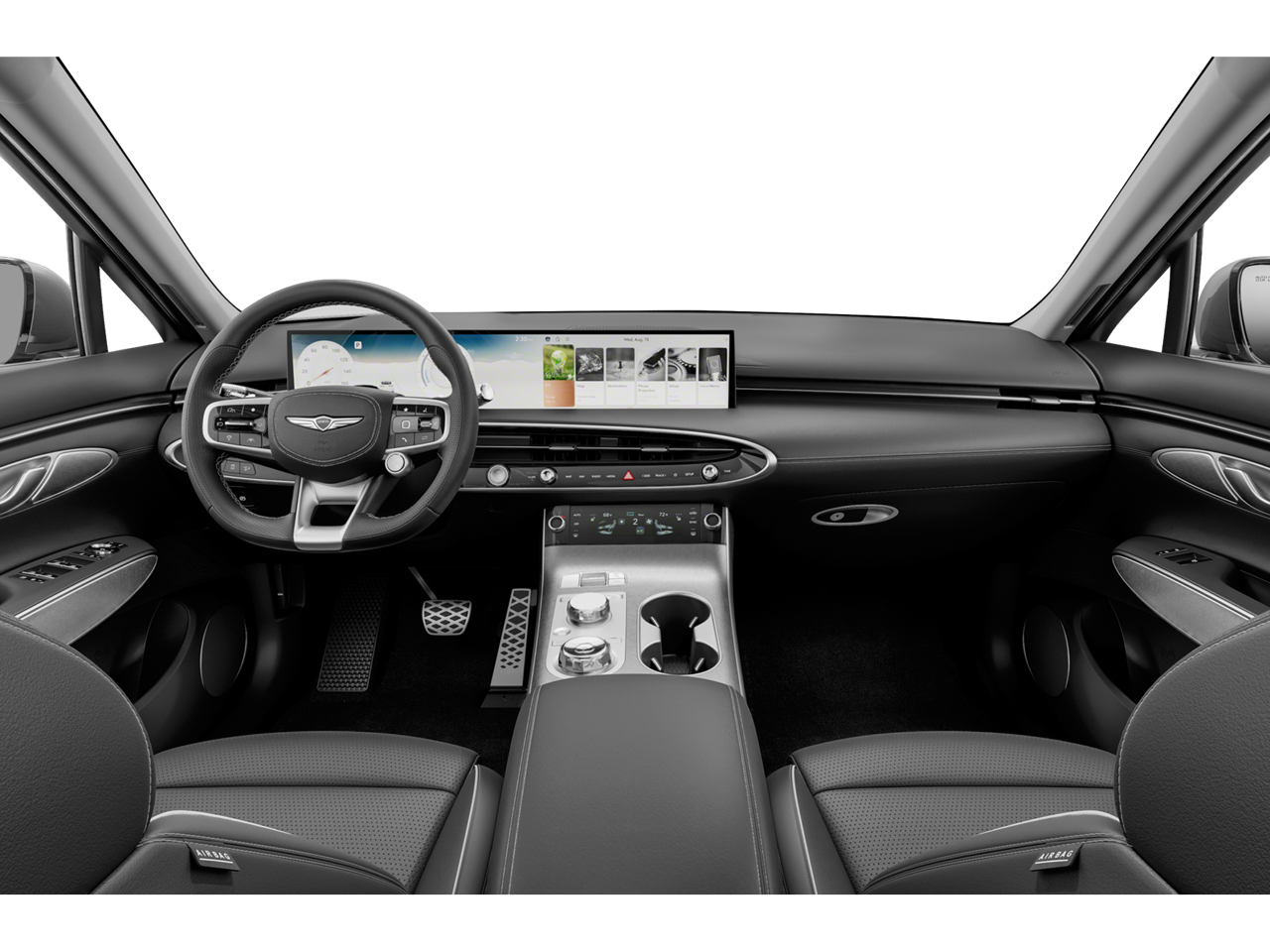 - Radio: AM/FM/HD Radio -inc: 27" OLED instrument cluster, navigation, SiriusXM radio w/90-day trial subscription (N/A in AK or HI), Genesis Connected Services, wireless Android Auto, wireless Apple CarPlay, Bluetooth® hands-free phone and audio streaming system, 8-speaker premium audio system, Wi-Fi hotspot, internal amplifier and USB connectivity