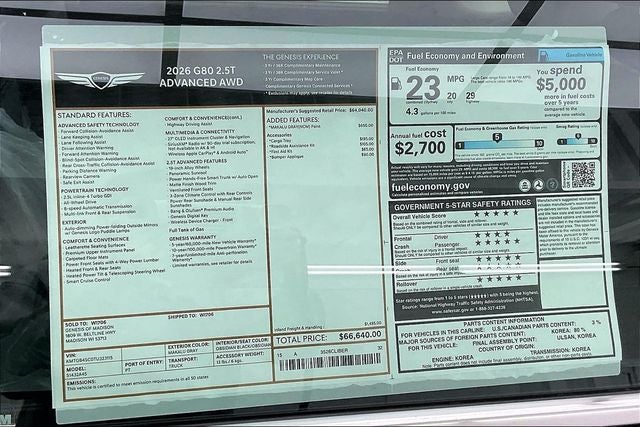 2026 Genesis G80 2.5T ADVANCED AWD