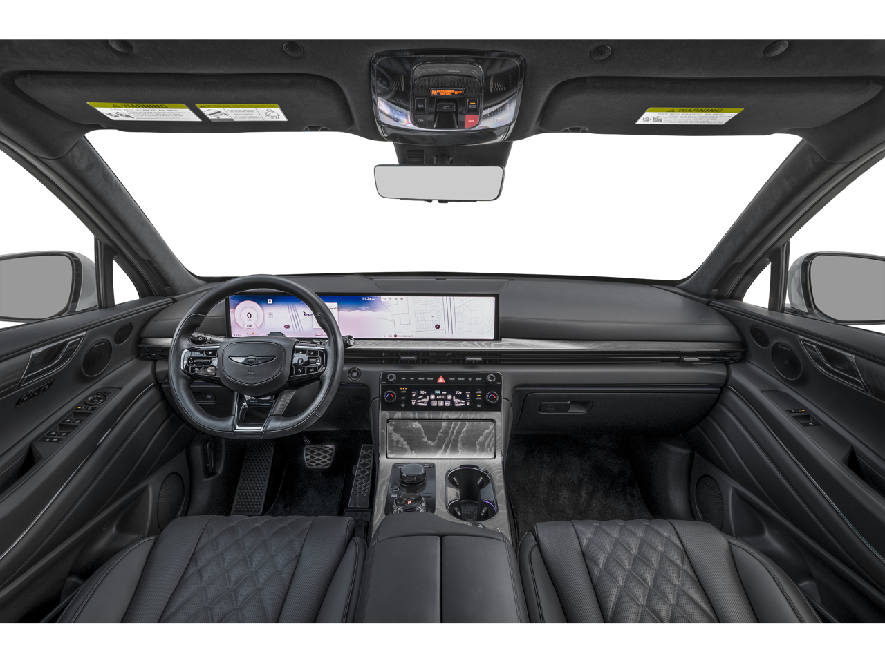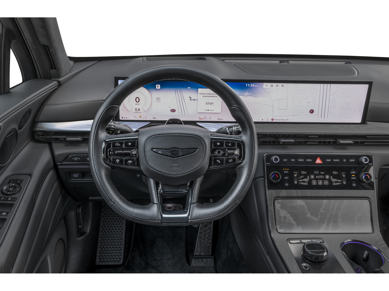 - Radio: AM/FM/HD Bang & Olufsen Premium Audio -inc: 18 speakers, 14-channel amplifier w/1,400 watts max output, 27" integrated OLED screen and navigation system, SiriusXM Radio w/90-day trial subscription (not available in AK or HI), wireless Apple CarPlay and Android Auto, Genesis connected services, Bluetooth® hands-free phone and audio streaming system, Wi-Fi hotspot and USB connectivity