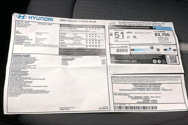 44/51 City/Highway MPG Price includes: $2500 - Hyundai HMF Dealer Choice : $2500 discount and 5.39% APR for 24 months. $44.05 per $1000 financed. Available to well qualified buyers who finance through Hyundai Motor Finance. H704. Exp. 03/31/2026