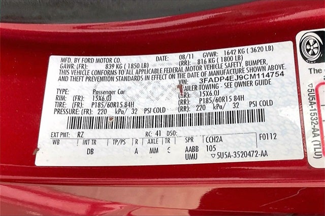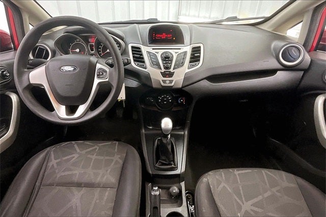 2012 Ford Fiesta SE Red Candy Metallic Tinted Clearcoat 1.6L I4 Ti-VCT FWD 29/38 City/Highway MPG 15 Painted Aluminum Wheels, 15 Steel Wheels w/Covers, 4 Speakers, ABS brakes, Air Conditioning, AM/FM radio, Bumpers: body-color, CD player, Compass, Driver door bin, Driver vanity mirror, Dual front impact airbags, Dual front side impact airbags, Electronic Stability Control, Equipment Group 202A, Front anti-roll bar, Front Bucket Seats, Front reading lights, Front wheel independent suspension, Illuminated entry, Knee airbag, LED Parking Lamps w/Black Bezels, License Plate Bracket, Low tire pressure warning, Occupant sensing airbag, Outside temperature display, Overhead airbag, Passenger door bin, Passenger vanity mirror, Power door mirrors, Power steering, Power windows, Radio data system, Radio: AM/FM Stereo/CD Player/MP3 Capable, Rear reading lights, Rear window defroster, Rear window wiper, Remote keyless entry, Speed Control, Speed-sensing steering, Split folding rear seat, Spoiler, Sport Appearance Package, Tachometer, Telescoping steering wheel, Tilt steering wheel, Traction control, Trip computer, Unique Cloth Front Bucket Seats, Variably intermittent wipers.