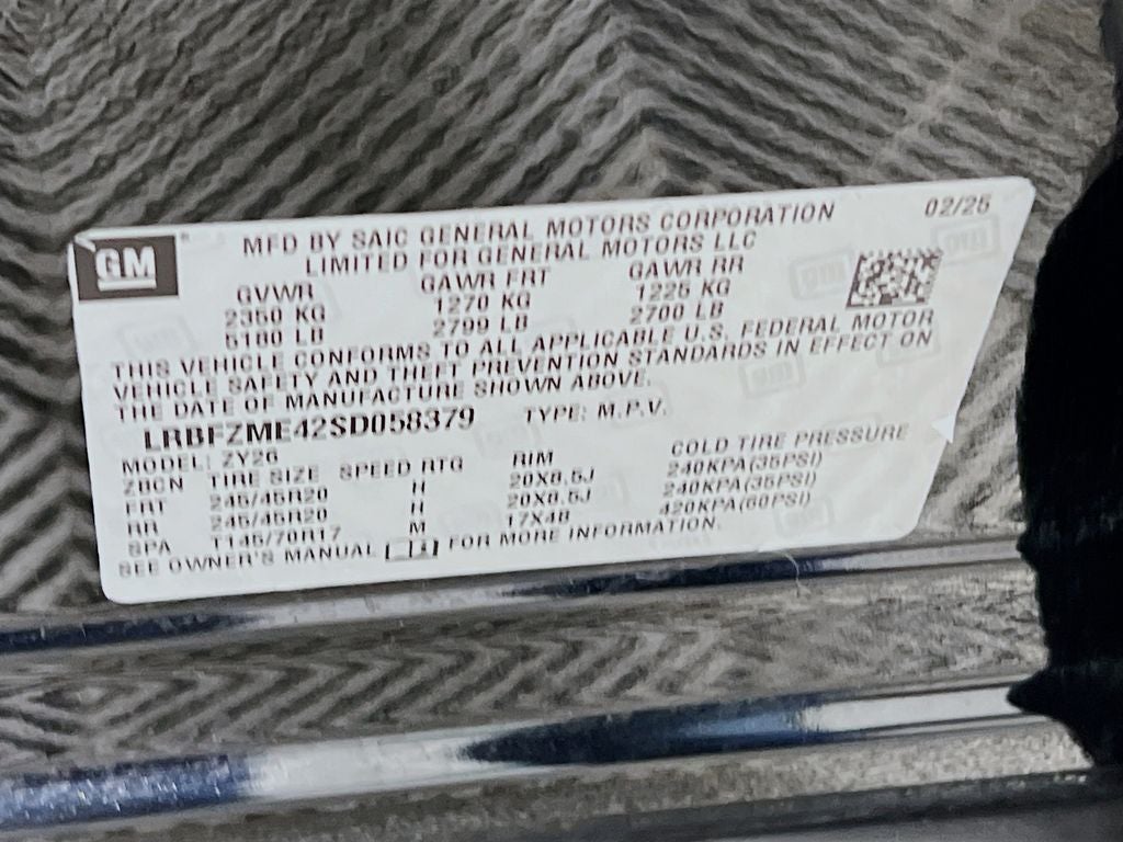 - Tires, P245/45R20 all-season